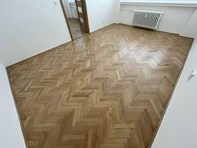Podlahové krytiny - dřevo broušené, lakované; vinilová krytina.