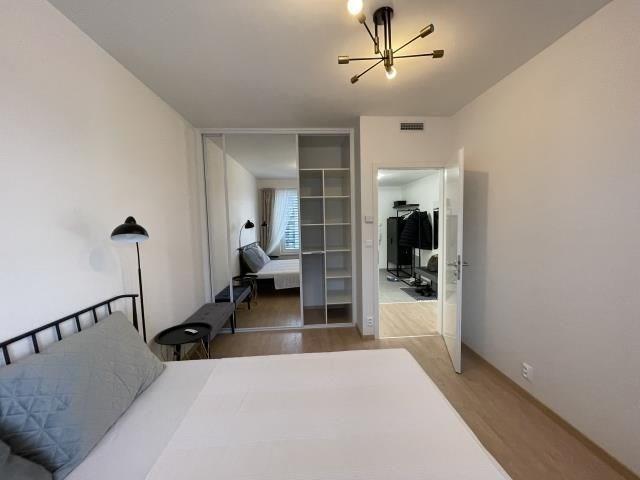 Moderní bydlení, vonící novotou, s větším monožstvím denního světla. Pěkně zařízený byt, ve vyšším patře; Ložnice mají venkovní žaluzie; Prostorná koupelna; 2x WC; Zařízený nábytkem. Moderní, praktická kuchyně, vybavená sklokeramickou varnou deskou, troubou na pečení, lednice a mrazák, myčka nádobí. Dále v bytě je: pračka prádla a sušička. K bytu, pro Vaše pohodlí je garážové stání a sklep. Internet možný od lokálního poskytovatele.