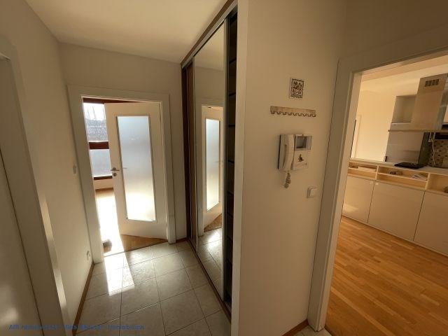 Pěkné bydlení s množstvím denního světla ve vyšším patře s balkonem. Zařízený nábytkem. Vbyvená kuchyně spotřebiči: lednice s mrazákem, myčka nádobí, sklokeramická varná deska, trouba na pečení. Pokoje mají na podlaze lakované dřevo. V bytě je několik vestavěných skříní. 2x koupelna: vana, sprchový kout. 2x WC; Garážové stání a sklep jsou k dispozici. Volný od 1.6.2026