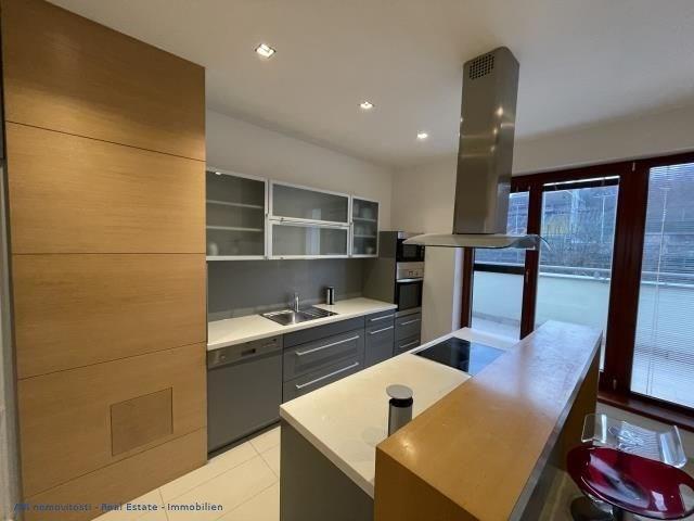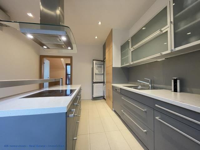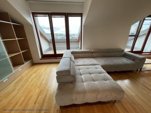 Your new home in Dejvice with a view from your own terrace, garage for your car and a cellar. Nice environment in the greenery of parks - a nature reserve. Fully air-conditioned apartment, quality housing, in a desirable location. Generous bathroom with corner bath and access to the terrace; 2x toilet (1x separate with sink), large living room with dining room - 27m²; spacious kitchen with access to the terrace with the possibility of shading with an awning; kitchen equipped: dishwasher, refrigerator, ceramic hob, oven, microwave oven, etc.; 3 bedrooms, the apartment has built-in wardrobes. All windows are equipped with mosquito nets. The rooms have wooden flooring. A garage for your car and a cellar will complete the comfort of living.