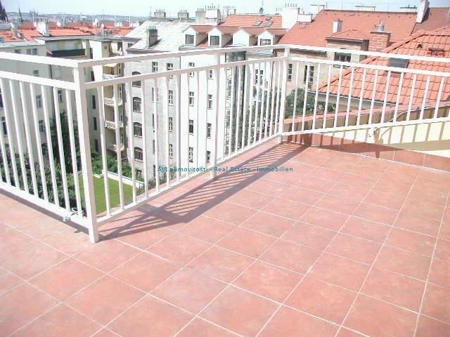 Great place in Vinohrady in an attractive location. Spacious newer apartment with terrace and panoramic view, 2 x bathroom (bath, shower), 3 x toilet, spacious equipped kitchen: fridge, freezer, ceramic hob, oven, washing machine, etc. 3 bedrooms (2 x with access to the terrace), floors - natural varnished wood. Security alarm, cable TV and internet.